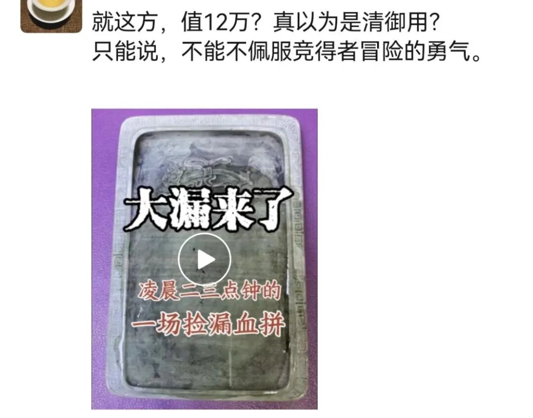 一、831 次出价!康熙松花砚凌晨 3 点拍出 12 万