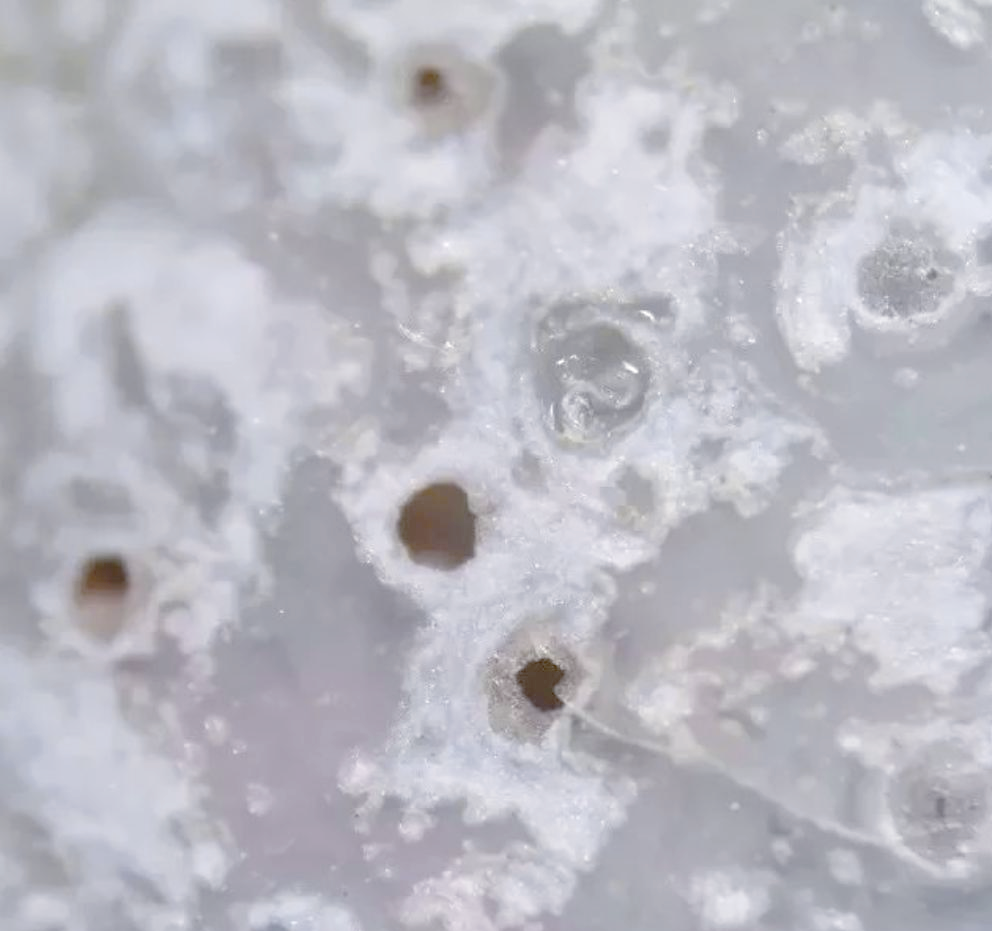 有些研究学者将瓷器釉层表面那些因时间流逝而发黑的气泡称为“死亡气泡”。尽管名字如此,它并非指这些气泡真的失去了生机。事实上,“死亡气泡”因内部侵入微生物而变黑,增添瓷器历史韵味,是鉴赏瓷器年代的重要线索。